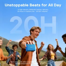 Tribit PocketGo Portable Wireless Bluetooth Speaker with 7W Stereo Sound, IP68 Waterproof Dustproof, 20H Playtime, Custom EQ, BT6.0 & TWS Pairing, Supports TF Card, Ideal for Travel, Outdoor, Gifts
