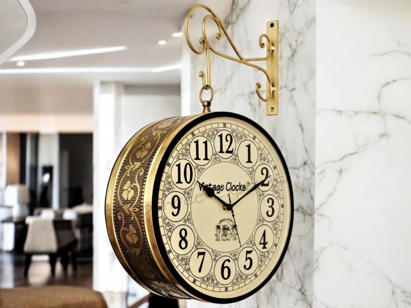 Vintage Clock Metal Double Side Hand-Crafted Gold analog Wall Clock / 12 Inch (30 CM’s) / VC-6509-12(1)